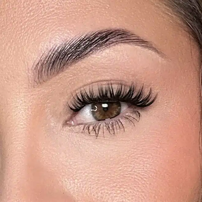 • Con su aplicador en forma de cepillo, aplica el adhesivo como si fuera una pestañina